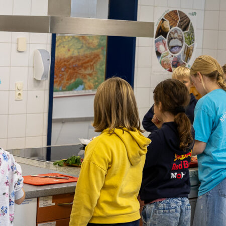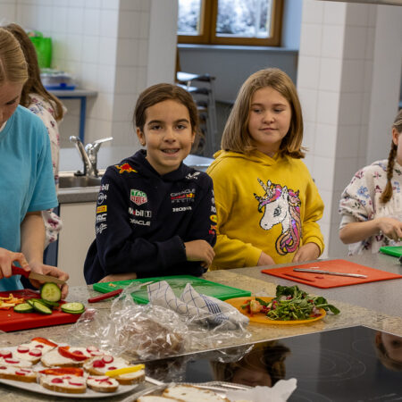 Die Kinder der 4. Klasse der VS Unterlangkampfen bereiteten gemeinsam mit ihren Buddys der MS Langkampfen eine köstliche und gesunde Jause in der Schulküche zu.