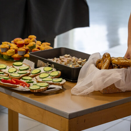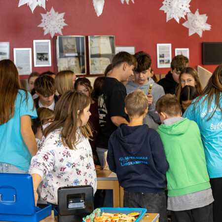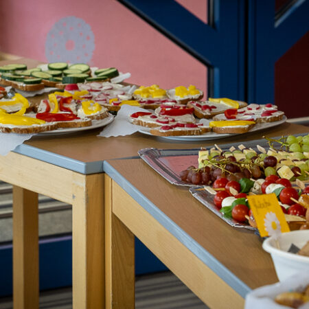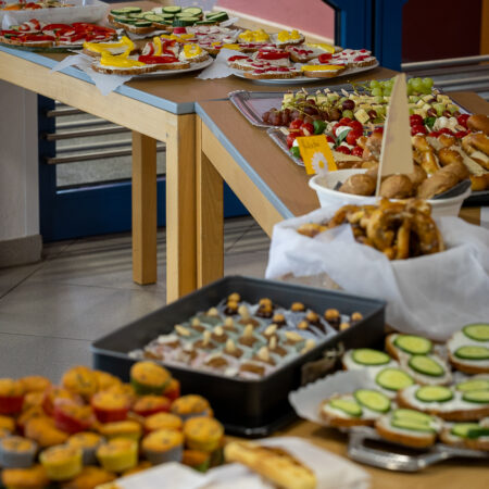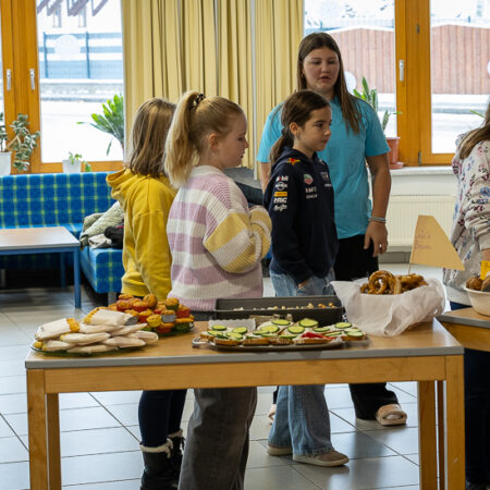 Anschließend wurde diese in der Aula der Mittelschule zum Verkauf angeboten. Der Andrang war groß und die Jause wurde von allen Seiten bestens angenommen – kaum eine Portion blieb übrig.