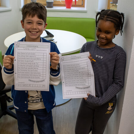 Die Kinder tauchten mit großer Begeisterung in die Welt der Geschichten ein und hatten sichtlich Freude am Lesen, Zuhören und Mitgestalten.