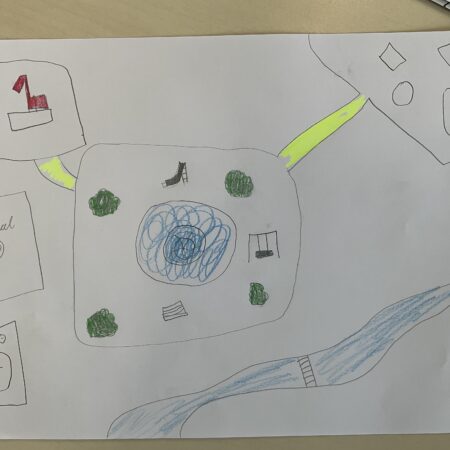 Ein besonderer Höhepunkt des Projekts war der Einsatz von Künstlicher Intelligenz: Die von den Kindern erstellten Pläne wurden digital „zum Leben erweckt“. Mithilfe von KI-Tools konnten die Zeichnungen in realistisch wirkende Bilder umgewandelt werden. So bekamen die Kinder eine spannende Vorstellung davon, wie ihre gezeichneten Orte in der Realität aussehen könnten.