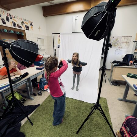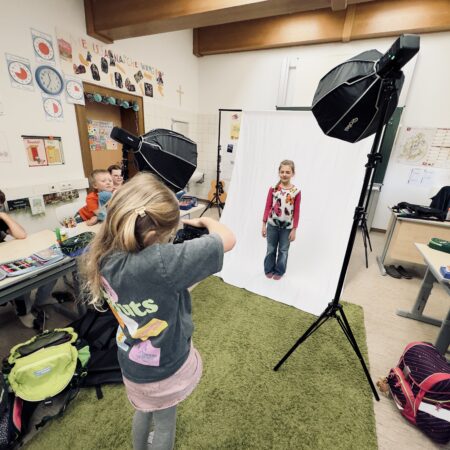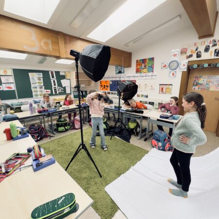 Im Rahmen eines MINT-Projekts durfte unsere 3. Klasse die spannende Welt der Fotografie kennenlernen. Mit einer Förderung von 1000 Euro konnten dafür Fotoequipment wie Blitze und Hintergründe angeschafft werden.